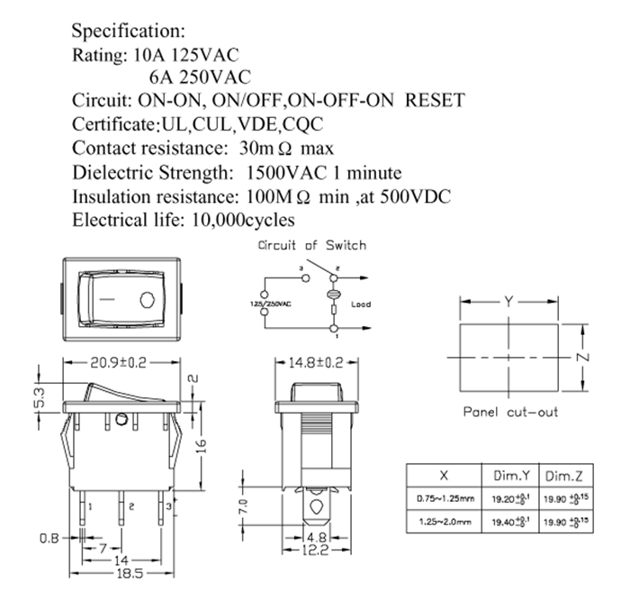电路:ON-ON, ON/OFF, ON-OFF-ON RESET