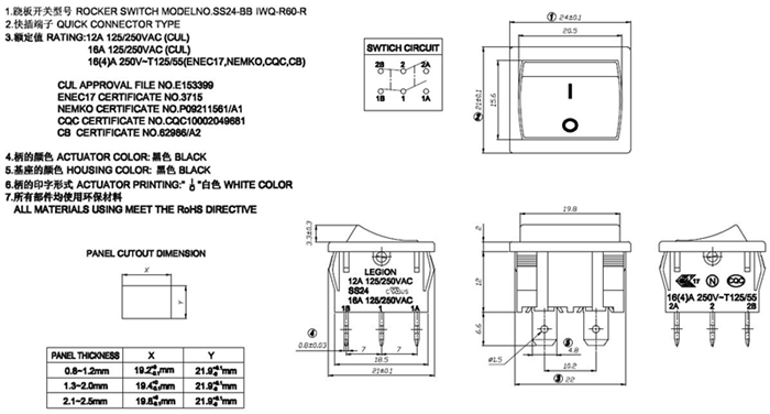 翘板开关SS24-BBIWQ-R60-R